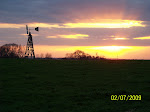 It gets dark here around 7:30 pm. Notice the top half of the photo below. It's pitch black in the pasture at night. So, it's hard to see the black angus cows unless it's a moonlit night (the ball in the upper left is not the moon -- that's a smudge on my camera lens)